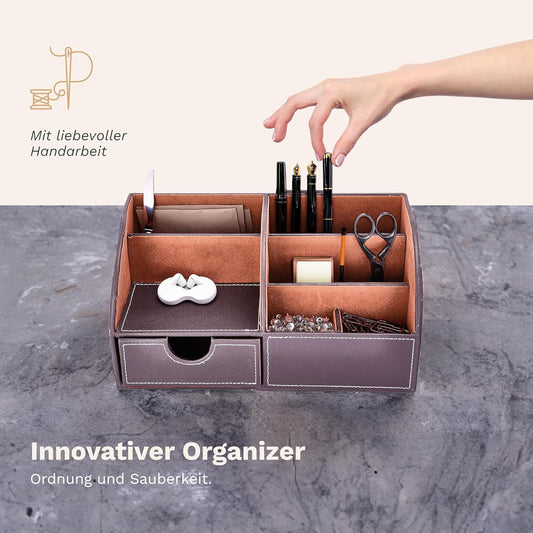 Organizer Da Scrivania E Portapenne per Ufficio, in Ecopelle, Design Pratico, Mantiene La Scrivania Ordinata E Pulita, 28 X 14,5 X 14 Cm, Marrone